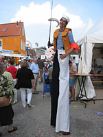 Stelzenfiguren - immer todchic und gut drauf - bieten große und kleine artistische Einlagen.